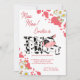 Invitation Moo moo rose motif mignonne fête d'anniversaire de