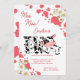 Moo moo rose motif mignonette invitation fête d'anniversaire de vache, ludique whimsical avec invitation de marguerites pour une fête d'anniversaire à thème de la ferme.