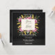 The soft blush floral artwork contrasts beautifully against the rich black backdrop, creating a timeless and sophisticated look ideal for fall, winter, or candlelit celebrations.