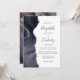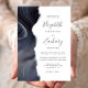 Le bord gauche de cette élégante faire-part de mariage moderne est doté d'une bordure aquarelle dans des teintes profondes et moelleuses de bleu, de violet et de gris, bordées de parties scintillant faux argent. Le texte personnalisable combine écriture manuscrite, copperplate et polices italiques en gris fusain sur un arrière - plan blanc. L'envers présente une conception d'agate correspondante.