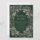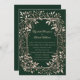 Ces invitations féeriques à des mariages de forêt sont parfaites pour ceux qui rêvent d'une fête de forêt enchantée, avec un riche arrière - plan vert émeraude de forêt avec un cadre botanique complexe et élégant avec des influences vintages qui capture l'essence d'un mariage de conte de fées. Ces invitations de forêts sombres et maussades mêlent des verts profonds à un blanc d'oeuf délicat, créant une atmosphère fantaisiste mais mystérieuse. Idéal pour les mariages gothiques, forestiers ou imaginaires, chaque invitation enchantée évoque l'allure d'un mariage de forêt sombre, aux éléments boisés mystiques, assurant votre journée spéciale est inoubliable dès que vos invités reçoivent leur invitation.