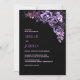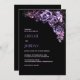 Invitation vos amis et les proches à votre mariage pour assister et célébrer le début de votre voyage de toute votre vie avec cette élégante invitation noire qui présente des roses mauve mauve avec parties scintillant dans l'arrière - plan. Le texte personnalisable vous permet d’ajouter sans effort les noms de la mariée et du marié, la date du mariage et les détails nécessaires de votre célébration. Une variété de types de papier et de styles d'angle sont disponibles pour vos invitations uniques, ainsi que l'option de téléchargement si vous préférez un format numérique.