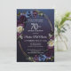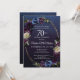 Des roses et des fleurs sauvages chics et mauves, sophistiqués et mauves, créent un design floral chic. Des côtelettes de blanc et de bleu ajoutent un intérêt visuel et une profondeur. Les baies et les fruits ajoutent au design sulfureux. Ensemble, elles décorent un cadre en or ovale à plusieurs brins élégant. L'invitation en retour a un motif vintage géométrique subtil. Cette invitation à 70e anniversaire fait partie de la collection Moody Purple Floral. Il contient des modèles que vous pouvez utiliser pour créer une suite d'invitation unique, ainsi que des modèles pour des panneaux d'accueil, des fournitures de fête et des décorations.