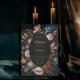 Cette faire-part de mariage unique et enchanteresse présente un cadre floral luxuriant dans le style des anciens maîtres hollandais, dressé contre un arrière - plan noir profond et mode. L'élégante calligraphie et le texte doré apportent une touche de luxe et de sophistication. Un choix charmant pour les épouses qui aiment l'esthétique romantique moody, le thème gothique et les invitations noires, cette invitation est sûr de tourner la tête et créer une atmosphère sophistiquée et romantique pour votre journée spéciale.