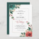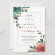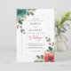 Ce design présente un agencement floral spectaculaire avec des fleurs turquoises profondes et des accents rouges vibrants, compensé par la végétation botanique et des touches dorées. Son style riche et artistique évoque un sens de l'élégance romantique, parfait pour une occasion de fête sophistiquée.