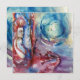 Peinture à l'aquarelle figurative contemporaine colorée, fantaisiste, romantique et symboliste représentant une figure légendaire spirituelle et mystique dans des tons de bleu clair, rose, rouge, violet, blanc par Alessandro Lumini 1988. Design artistique et cool facile à personnaliser pour une cérémonie de mariage, carte d'annonce de nuptial, cartons de table, save-the-date, cartes de remerciement, fêtes de douche de mariée, sweet 16, fêtes d'anniversaire de quinceanera, douches d'engagement romantiques, Noël, fête de vacances de bureau, réunions de famille, célébrations du Nouvel An, Saint-Patrick, carnaval, fêtes de Mardi Gras, anniversaires, rassemblements, remises de diplômes scolaires, concerts, récitals ou presque n'importe quel événement que vous souhaitez ! Morgan le Fay, alternativement connu sous le nom de Morgane, Morgaine, Morgana et d'autres variantes, est une puissante sorcière d'Avalon dans la légende arthurienne. Avalon (probablement issu du mot celtique gallois afal, signifiant pomme ; est une île légendaire figurant dans la légende arthurienne, célèbre pour ses belles pommes. Il apparaît pour la première fois dans le récit pseudohistorique de Geoffrey de Monmouth en 1136 "L'Histoire des rois de Bretagne" comme l'endroit où l'épée du roi Arthur Caliburn (Excalibur) a été forg