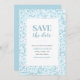 Invitation pour sauvegarder la date avec un motif de mosaïque bleu aqua.