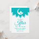 Silhouette en blanc d'une mosquée dans un croissant de lune avec une bordure décorative. L'arrière - plan et le texte sont d'un bleu turquoise mais peuvent être customisés à n'importe quelle couleur que vous aimez. Parfait pour le mois du Ramadan Iftar ou des célébrations de l'Aïd.
