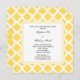 Cartons d'invitation pour dîner de répétition avec motif à quatre feuilles jaune et blanc monogrammé. Motif à quatre feuilles jaune citron sur fond blanc.
