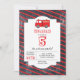 Une jolie illustration d'un jouet pour enfants de camion de pompier rouge. L'adorable machine à feu rouge se précipite pour éteindre un feu. Un véhicule d'urgence favori depuis toujours. Idéale invitation d'anniversaire, il suffit de customiser les détails et en faire votre propre. Décor d'anniversaire et faveurs dans la collection.
