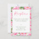 Nouvelle carte d'insertion de réception de mariage boho chic personnalisée NewParkLane, avec un beau motif de pivoines roses et des modèles de texte pour vos noms et informations de réception. Au dos, une grande rose assortie.