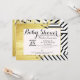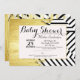 Élégant bracelet de peinture faux or à rayures noir et blanc motif Bébé Shower invitations. Un design très classique et sophistiqué pour la mère. Personnalisez avec votre propre message et monogramme sur le dos. Toute la conception d'impression photo.