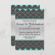 Élégantes invitations de fête de célébration Sweet 16 noir, sarcelle néon et blanc, dentelle et funky, motif cool. Design très classique et sophistiqué pour la dame d'honneur de la fête d'anniversaire. Personnalisez avec votre propre message et monogramme au dos. Conception d'impression photo personnalisée.