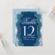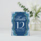 Ce motif de roche géode en agate bleu et sarcelle élégant et joli avec une garniture en faux or, carte de table de mariage. Un design très classique et sophistiqué pour la réception de mariage chic. Personnalisez avec des numéros de table ou ajoutez votre propre message personnel en le personnalisant. Conception d'impression photo.