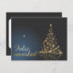 La tarjeta navideña presenta un elegante árbol de Navidad dorado formado por estrellas centelleantes sobre un fondo azul oscuro. La inscripción "Feliz Navidad" en letras curvas doradas redondea con estilo el maladie fête. 🎄 ✨