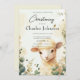 Célébrez l'occasion spéciale du baptême de votre fils avec nos cartes d'invitation délicieuses, avec une illustration attachante d'un mouton entouré de fleurs vertes délicates. Les charmants moutons apportent une touche de fantaisie, tandis que les doux accents floraux verts évoquent un sentiment de sérénité et de beauté de la nature. Le lettrage élégant améliore le design général, ajoutant une touche de sophistication et de grâce. Chaque carte est soigneusement conçue pour faire une première impression mémorable sur vos invités. Idéal pour annoncer ce jalon important, nos invitations à baptiser joliment allient charme ludique et élégance raffinée dans un design harmonieux.