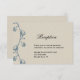 Ce modèle sucré appelé Lys de la Vallée sur Lin écru, a un fond qui ressemble à du lin écru. Sur le côté gauche se trouve une bordure de fleurs de Lys de la Vallée dessinées à la main en bleu. Les Lys de la Vallée s'affaissent un peu comme des cloches de mariage depuis les tiges vertes brillantes. Cette forme jolie et la douce fragrance font du lys de la vallée un ajout populaire aux mariages et symbolisent la pureté. Cet ensemble comprend des invitations, des cartes de mise en garde, des cartes de réponse, des cartes de remerciement, des porte-numéros de table, des sceaux d'enveloppe, des étiquettes de vin, des classeurs, des étiquettes d'adresse de retour et de nombreux autres éléments de papeterie de mariage, des faveurs et des cadeaux disponibles. Utilisez les autocollants de sceau d'enveloppe pour vos cadeaux DIY - ceux-ci sont disponibles en grandes et petites tailles ! Tous les éléments sont imprimés sur nos produits de haute qualité