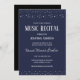 Jolie parties scintillant en faux or, faits saillants sur la bordure supérieure et inférieure. Faux notes en feuille d'argent en haut de l'invitation. Invitations récital de musique sobre et élégante en argent et bleu. Idéal pour piano, flûte, clarinette, trompette, violon, guitare ou plusieurs récitals de musique étudiante. Générique pour plusieurs types d'instruments.
