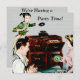 Invitations présentant une illustration vintage des années 1950 de trois personnes qui écoutent des disques sur un joueur de disque vintage. Customisez-les avec votre propre texte. Cool rétro !