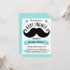 Belle et amusante invitation baby shower (4,5 x 6,25") avec une moustache à guidon noir et des étoiles noires et bleu aqua. En haut et en bas, il y a des bordures bleues aqua. Nom et informations de partie personnalisables.