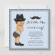 Invitation Mustache Little Man Bleu et Baby shower noir