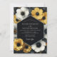 A darkly elegant design featuring rich mustard yellow and crisp white anemones against a moody, deep green backdrop. This opulent floral arrangement evokes a sense of dramatic romance. The rich hues create a striking and memorable visual for a special occasion.