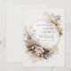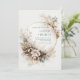 Welcome your loved ones with the ethereal, organic elegance of this botanical composition. The design features a delicate gold circular frame that anchors the layout, surrounded by a lush, asymmetrical crescent of muted teal and bronze-tan foliage. A soft lavender watercolor bloom sits at the heart of the arrangement, accented by fine, airy botanical sprigs and a hazy, dreamlike wash that blends seamlessly into the white textured background. This wedding invitation is the perfect choice for a sophisticated garden wedding, a romantic outdoor ceremony, or a modern boho celebration. It ensures your event details are presented with a sense of timeless, natural grace that will enchant your guests from the moment they open the envelope.