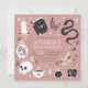 Planifiez votre fiancée, votre gitane ou votre fête d'anniversaire à thème Halloween avec ces invitations chic éffrayantes dans une palette de couleurs inspirée de la nature boho. Le design présente des illustrations d'un serpent, d'un livre d'épices, d'une bougie, d'un pot, d'un crâne, de cartes tarot et d'une potion entourant les détails de votre fête d'anniversaire.