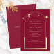Mystical Bourgogne Sun Star Moon Astronomy Space Wedding Invitations présente le soleil, la lune et les étoiles avec un cadre doré sur un arrière - plan bordeaux. À l'intérieur, vous trouverez vos informations d'invitation de mariage personnalisées. Personnalisez en modifiant le texte dans les zones de texte. Conçu pour vous par ©Evco Studio www.zazzle.com/store/evcostudio