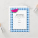 Cette invitation ludique est accompagnée d'un arrière - plan à nappes bleues et blanches qui rappelle les étés à l'ancienne. En haut à gauche, il y a une tranche de pastèque. Votre texte personnalisable est centré sur un centre blanc. Il s'agit d'une invitation idéale pour un pique-nique, une réunion de famille, un barbecue, un événement commémoratif ou pour terminer la saison estivale à la fête du Travail.