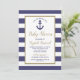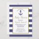 Invitation Nautical Anchor Navy Blue Striped Boy Baby Shower