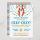 Célébrez un anniversaire amusant sur la plage avec ces invitations lumineuses sur le thème de la langouste. Fabriqués dans les tons rouge, bleu et or sur le blanc, ces invitations nautiques montrent une écrevisse et des coquillages avec des mots humoristiques : "[Votre nom]'s Birthday is Gonna Get Cray !" Le dos comprend un motif rayé. Ils sont parfaits pour toute fête autour du lac, de l'océan ou de la pêche, et ils sont parfaits pour une ébullition à l'écrevisse ! Utilisez les modèles simples pour personnaliser les champs de texte, ou customisez plus loin pour apporter des modifications plus détaillées. Organisez une fête d'anniversaire amusante sur la plage avec ces invitations qui attirent l'oeil.