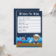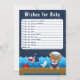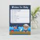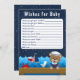 Ce joli et amusant souhait pour carte bébé dispose d'un marin marin ourson sur un pont en bois avec un mouette et un crabe. Dans l'arrière - plan il y a un joli oiseau rouge sur un voilier, des vagues de l'océan et un ciel étoilé bleu marine. Le texte combine des polices audacieuses et serif pour un look élégant et moderne. Parfait pour un baby shower à thème nautique.