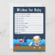 Cette carte de bébé, mignonne et amusante, présente un petit singe marin sur un pont en bois avec un mouette et un crabe. Dans l'arrière - plan il y a un joli oiseau rouge sur un voilier, des vagues de l'océan et un ciel étoilé bleu marine. Le texte combine des polices audacieuses et serif pour un look élégant et moderne. Parfait pour un baby shower à thème nautique.