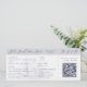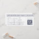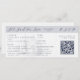 This wedding invitation is designed to look like a boarding pass. It features a semi-opaque illustration of a sailing ship, which you can replace with an image of the destination wedding venue. Elegant dark blue lettering in serif and script fonts lay out the bride and groom names, and details of the wedding, including the location, date, and a QR code to RSVP.