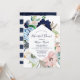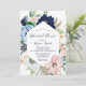 Cette invitation à la répétition florale nautique moderne est parfaite pour une répétition de mariage sur la plage. Le design fantaisiste présente des fleurs d'aquarelle rose pâle et bleu marine aux accents d'étoile d'or, donnant une ambiance de plage.