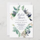 Cette invitation nuptiale verte marine moderne est parfaite pour une douche de mariage de plage. Le design botanique présente de beaux feuilles verts aux accents de fleurs marines et d'étoiles de mer dorées, ce qui lui donne une ambiance de plage.