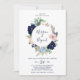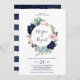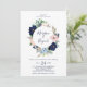Cette faire-part de mariage moderne à couronne florale nautique est parfaite pour une croisière ou un mariage sur la plage. Le design fantaisiste présente des fleurs d'aquarelle rose pâle et bleu marine aux accents d'étoile d'or, donnant une ambiance de plage.