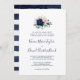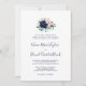 Ce faire-part de mariage moderne à fleurs nautiques traditionnel est parfait pour une croisière ou un mariage sur la plage. Le design fantaisiste présente des fleurs d'aquarelle rose pâle et bleu marine aux accents d'étoile d'or, donnant une ambiance de plage.