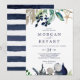 Ce faire-part de mariage marin moderne à rayures marines est parfait pour une croisière ou un mariage sur la plage. Le design botanique présente de beaux feuilles verts aux accents de fleurs marines et d'étoiles de mer dorées, ce qui lui donne une ambiance de plage.