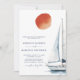 Carton d'invitation de mariage nautique avec QR Code "Naviguer vers l'avenir ensemble"... Notre invitation de mariage sur le thème nautique présente un voilier aquarelle glissant sous un soleil orange attirant l'attention sur votre texte d'invitation composé en écriture calligraphique moderne combinée à une typographie serif classique. Au verso de l'invitation figure le voilier et le soleil au-dessus d'une citation inspirante pour votre jour de mariage : "Naviguer vers l'avenir ensemble". Également présent au verso de l'invitation, votre code QR de site web de mariage ainsi que l'URL du site permettent à vos invités de répondre facilement en ligne et de consulter tous les détails normalement envoyés dans un dossier de mariage. Le code QR exemple et tout le texte exemple (à l'exception des éléments calligraphiques) peuvent être facilement révisés avec vos propres informations sur le modèle de personnalisation.