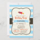 Invitation Navire d'espace de roquette rouge; Bleu clair