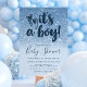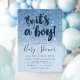Navy Baby Blue Parties scintillant Ombre C'Est Une Invitation Baby shower Garçon. Invitation baby shower moderne tendance avec parties scintillant faux bleu et un bleu bébé choisissez votre propre arrière - plan couleur avec de jolies petites empreintes de pieds bébé. Personnalisez facilement ce modèle avec votre propre texte personnalisé et les détails de la douche.