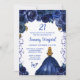 Cette invitation d'anniversaire élégante et glamour présente une belle princesse aux cheveux blonds et à la peau claire dans une robe bleu marine. Le texte combine écriture manuscrite et polices sans serif modernes pour un look élégant et sophistiqué. Les compositions florales, papillons et confettis créent un mélange parfait de rustique et de chic. Graphiques par www.etsy.com/uk/shop/SunflowerDayLove