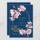 Invitation Navy Blue Blush Pink Magnolia Floral Save the Date