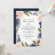 Invitation Navy Blue Blush Pink Rose Boho QR Code Wedding
