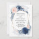 Invitation Navy Blue Floral Dusty Budget QR Code Wedding