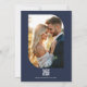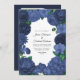 Invitation Navy Blue Floral Photo and QR Code Wedding