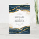 Invitation Navy Blue Gold Abstract Ink QR Code Wedding
