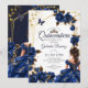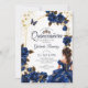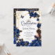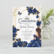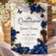 Invitation Navy Blue Golden Tiara Roses Quinceañera